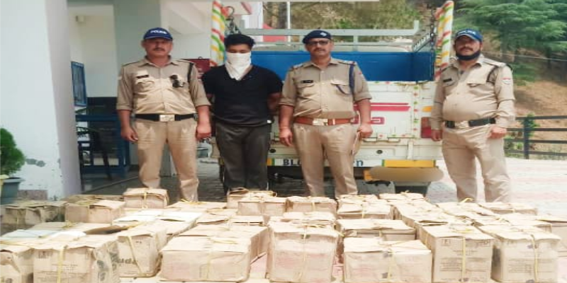 अल्मोड़ा पुलिस ने बड़ी कार्यवाही करते हुए अवैध शराब का जखीरा पकड़ा है। शुक्रवार को पुलिस ने दन्या थाना क्षेत्रान्तर्गत एक पिकअप वाहन से 42 पेटियों में कुल 504 बोतल अवैध अंग्रेजी शराब बरामद की है। एसएसपी देवेंद्र पींचा के निर्देश पर मादक पदार्थों की तस्करी व अवैध बिक्री पर रोक लगाने के लिए पुलिस की कार्यवाही जारी है। इसी क्रम में दन्या पुलिस, एसओजी की संयुक्त टीम ने चेकिंग के तहत लाखों की अवैध शराब के साथ एक तस्कर को गिरफ्तार किया है। दरअसल, थानाध्यक्ष दन्या विजय सिंह नेगी एवं एसओजी प्रभारी कुन्दन सिंह रौतेला के नेतृत्व में पुलिस व एसओजी की संयुक्त टीम गरुड़ाबाज तिराहे के पास चेकिंग कर रही थी। इसी दौरान पिकअप संख्या यूके04 सीसी 6066 को रोककर चेक किया, तो उसमें से चालक मनोज कुमार के कब्जे से कुल 42 पेटियों में कुल 504 बोतल अवैध अंग्रेजी शराब बरामद हुई। पुलिस ने आरोपी मनोज कुमार पुत्र गोधन सिंह, निवासी ग्राम पुभाऊं, थाना लमगड़ा, अल्मोड़ा को गिरफ्तार कर लिया और उसके खिलाफ थाना दन्या में आबकारी अधिनियम के तहत एफआईआर पंजीकृत कर आवश्यक कार्यवाही की। बरामद शराब की कीमत 03 लाख 93 हजार 120 रुपये बताई गई है। पुलिस टीम में एसओजी प्रभारी कुन्दन सिंह रौतेला, प्रशिक्षु उप निरीक्षक दीपक बहुगुणा, हेड कांस्टेबल विनोद डसीला, कांस्टेबल कुन्दन सिंह, राजेश भट्ट व राकेश भट्ट आदि शामिल रहे।