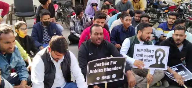 देहरादून। अंकिता भंडारी हत्याकांड में वीआईपी के नाम का खुलासा करने और जल्द चार्जशीट की मांग को लेकर पुलिस मुख्यालय का घेराव करने जा रहे एनएसयूआई प्रदेश अध्यक्ष मोहन भंडारी समेत अन्य कार्यकर्ताओं को पुलिस ने पहले ही हिरासत में ले लिया। उन्हें नेहरू कॉलोनी थाने की फव्वारा चौक पुलिस चौकी ले जाया गया। जहां दोपहर 12 बजे तक उन्हें बैठाए रखा गया। उसके बाद प्रशासन की ओर से वहीं ज्ञापन लेकर सभी को छोड़ दिया गया। इस दौरान कार्यकर्ताओं ने धरने में धरना भी दिया। इस दौरान आयुष गुप्ता, विकास नेगी, उदित थपलियाल, प्रकाश नेगी, आयुष नेहरा, जितेंद्र नेगी, कमल कांत आदि मौजूद रहे।