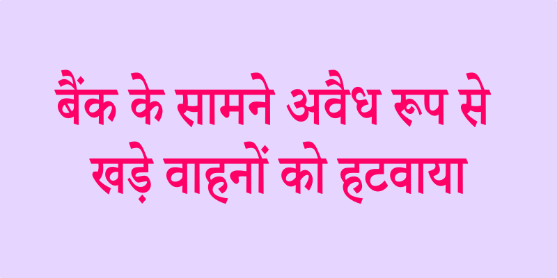 बैंक के सामने अवैध रूप से खड़े वाहनों को हटवाया