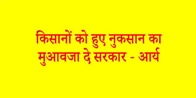 किसानों को हुए नुकसान का मुआवजा दे सरकार – आर्य