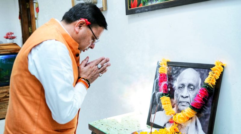 एकता दिवस पर सीएम ने सरदार वल्लभ भाई पटेल को दी श्रद्धांजलि