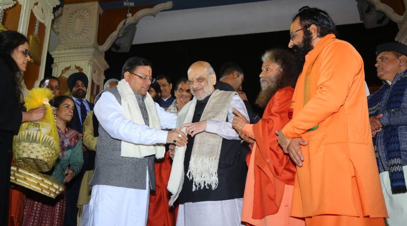 ऋषिकेश पहुंचे केन्द्रीय गृह मंत्री का स्वामी चिदानंद मुनि ने किया स्वागत