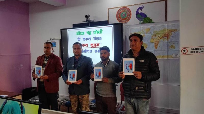 नगर में युवा कवि नीरज चंद्र जोशी की काव्य संग्रह कुसुम का विमोचन हुआ। जीआईसी स्थित आईटीडीए में हुए कार्यक्रम के दौरान जिला सूचना विज्ञान अधिकारी गौरव कुमार ने काव्य संग्रह का विमोचन किया। इस दौरान उन्होंने नीरज की सराहना करते हुए कहा कि उनकी रचनाएं आम जनमानस की आकांक्षाओं, भावनाओं व संवेदनाओं का प्रतिबिंब है। उन्होंने साइबर धोखाधड़ी को लेकर भी लिखी नीरज की पुस्तक को सराहा। यहां जगदीश लोहनी, दमयंती लोहनी, मुस्कान, बंशीधर, महेश उप्रेती आदि मौजूद रहे।