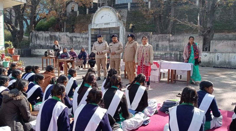 अल्मोड़ा महिला थाना पुलिस ने जिला विधिक टीम के साथ राजकीय कन्या इंटर कॉलेज एनटीडी में जागरुकता अभियान चलाया। शनिवार को थानाध्यक्ष महिला थाना मीना आर्या के निर्देशन में महिला हेड कांस्टेबल विद्या आर्या, महिला कांस्टेबल नीतू व महिला कांस्टेबल द्रौपदी सुयाल द्वारा जिला विधिक प्राधिकरण अल्मोड़ा के सदस्य नीमा बिनवाल व गोविंदी बिष्ट के साथ समन्वय स्थापित कर विक्टर मोहन जोशी राजकीय कन्या इंटर कॉलेज एनटीडी में जागरूकता कार्यक्रम आयोजित किया गया। जागरूकता कार्यक्रम में छात्राओं को साइबर क्राईम के प्रति जागरूक करते हुए साइबर क्राइम के विभिन्न तरीकों की जानकारी देकर मोबाइल कॉल, व्हाट्सएप व फेसबुक पर अपनी निजी जानकारी किसी को नहीं बताने सहित सुरक्षा के अन्य तरीके समझाए गए। नाबालिग बालिकाओं के साथ होने वाले अपराधों के प्रति सजग करते हुए यौन उत्पीड़न, मानव तस्करी, गुड टच-बैड टच एवं कानूनी जानकारी व उनके अधिकारों के प्रति जागरूक किया गया। इसके साथ ही सोशल मीडिया के माध्यम से हो रहे अपराधों के प्रति सचेत करते हुए सोशल मीडिया के विभिन्न प्लेटफार्म के उपयोग के दौरान सावधानी बरतने, निजी जानकारी किसी अनजान से शेयर नहीं करने हेतु बताया गया। इसके अतिरिक्त उत्तराखंड पुलिस एप की सुविधाओं, गौरा शक्ति फीचर की उपयोगिता, हेल्पलाइन नंबर 112, साइबर क्राइम हेल्पलाइन नंबर-1930, महिला हेल्पलाइन नंबर-1090 व महिला थाना के हेल्पलाइन नंबरों की जानकारी देकर जागरूक किया गया।