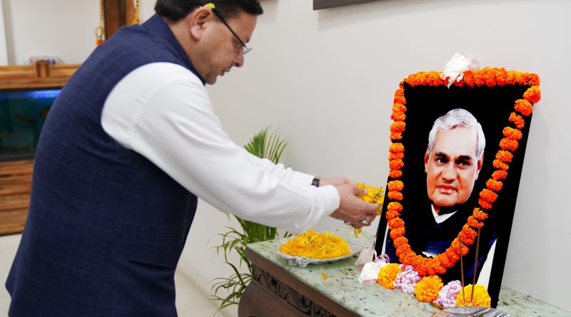 सीएम धामी ने दी पूर्व पीएम भारत रत्न, स्व0 अटल बिहारी वाजपेयी की जयंती पर श्रद्धांजलि