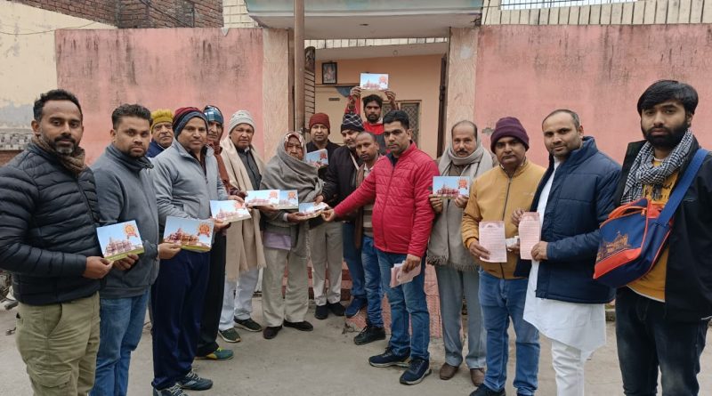घर-घर जाकर अयोध्या से आए पूजित अक्षत किये वितरित