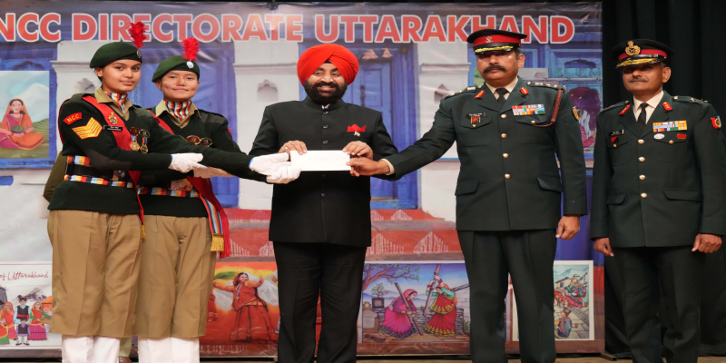 राज्यपाल लेफ़्टिनेंट जनरल गुरमीत सिंह (से नि) ने शनिवार को राजभवन में 75वें गणतन्त्र दिवस परेड में प्रतिभाग करने वाले एनसीसी कैडेट्स को सम्मानित किया। गौरतलब है कि उत्तराखंड से इस वर्ष की गणतंत्र दिवस में आयोजित परेड और अन्य गतिविधियों में 122 कैडेट्स ने प्रतिभाग किया जिसमें 46 लड़कियां भी शामिल रहीं। इस अवसर पर राज्यपाल ने एनसीसी 11 यूके बटालियन (गर्ल्स) मेजर शशि मेहता को भी सम्मानित किया। उन्होंने झांसी से दिल्ली तक की नारी शक्ति वंदन दौड़ में प्रतिभाग करते हुए 470 किलोमीटर की दूरी तय कर रिकॉर्ड बनाया। राज्यपाल ने इस असाधारण उपलब्धि के लिए मेजर शशि मेहता की सराहना की।