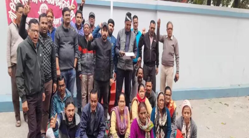 पेंशन की मांग के लिए पीडब्ल्यूडी कर्मचारियों ने दिया धरना