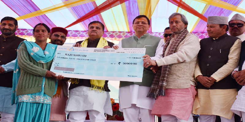 इस दौरान मुख्यमंत्री ने अटल आवास योजना के अंतर्गत निर्मित भवनों के 02 लाभार्थियों को घर की चाबी सौंपी। जिसमें मथुरा लाल और मुकेश लाल शामिल है। प्रधानमंत्री आवास योजना (शहरी) के अंतर्गत नीलम देवी को द्वितीय किश्त के तहत 60 हजार का चेक प्रदान किया। प्रधानमंत्री आवास योजना (ग्रामीण) के अंतर्गत संगीता देवी और गुड्डी देवी को घर की चाबी प्रदान की। मुख्यमंत्री स्वरोजगार योजना के अंतर्गत राजेश्वरी देवी और नरेन्द्र सिंह को 50-50 हजार रुपये का अंशदान धनराशि के चेक प्रदान किए। महिला सशक्तिकरण के तहत मन्दोदरी देवी को महालक्ष्मी किट प्रदान किया। उल्लेखनीय कार्य के लिए युवक मंगल दल बूरा को 75 हजार और महिला मंगल दल आला जोखना 37 हजार 500 की प्रोत्साहन राशि के चेक प्रदान किए। देवभूमि मत्स्य जीवी सहकारिता समिति को 20 लाख का चेक प्रदान किया।