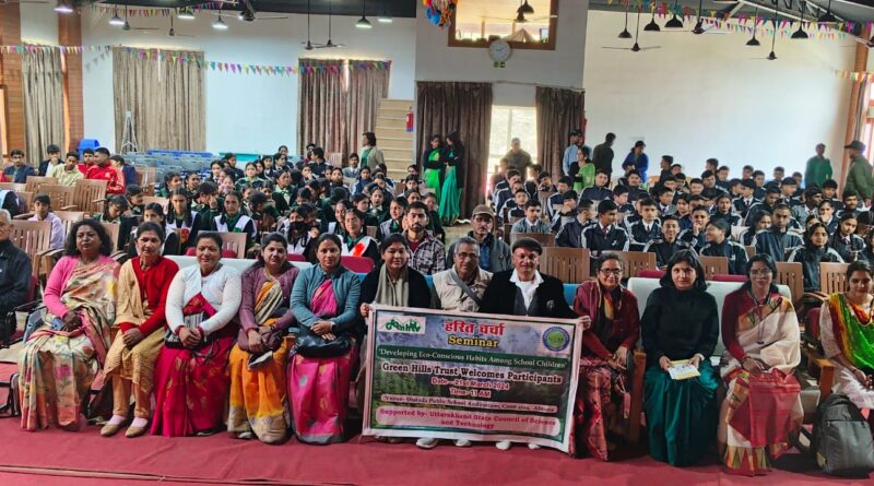 ग्रीन हिल्स ट्रस्ट द्वारा ‘विद्यालयी बच्चों में पर्यावरण के प्रति जागरूक आदतें विकसित करना’ विषय पर एक सेमिनार का आयोजन किया गया। जिसमें जल संसाधन, भूमिगत जल को बढ़ाने, वृक्षारोपण, वायु प्रदूषण को रोकने, गैर हिमानी नदियों को बचाने, छोटे-छोटे प्राकृतिक नालों, सूख चुके नौलों को बचाने के संबंध में स्थानीय स्कूलों के बच्चों के साथ चर्चा की गई। पर्यावरण प्रेमी मोहन चंद कांडपाल द्वारा विगत 35 वर्षों से किए गए कार्य पानी बोओ पानी उगाओ, के अनुभव को बच्चों के साथ साझा किया। सेमिनार में एडम्स गर्ल्स इंटर कॉलेज, शारदा पब्लिक स्कूल, स्प्रिंग डेल्स पब्लिक स्कूल, विक्टर मोहन जोशी गर्ल्स इंटर कॉलेज एनटीडी, जीजीआईसी अल्मोड़ा और विभिन्न स्कूलों के बच्चों ने जानकारी प्राप्त की और विशेषज्ञों के साथ संवाद किया। सेमिनार में पहुंचे बच्चों ने संकल्प लिया कि अपने जन्मदिन पर अथवा किसी भी शुभ कार्य पर एक वृक्ष लगाकर उसका जीवन भर संरक्षण किया जाएगा। शारदा पब्लिक स्कूल की प्रधानाध्यापिका विनीता लखचौरा द्वारा पर्यावरण संरक्षण के लिए उनके द्वारा उठाए जा रहे कदमों जिसमें वेस्ट प्लास्टिक ब्रिक कार्यक्रम उल्लेखनीय है के बारे में बताया गया। कार्यक्रम का संचालन ग्रीन हिल्स ट्रस्ट की सचिव डॉ वसुधा पंत ने किया। कार्यक्रम में विभिन्न विद्यालयों के अध्यापकों हेमलता वर्मा, प्रेम तिवारी, भूषण पांडे, विवेक जोशी, पूनम जोशी, रूप सिंह, दीवान सिंह बिष्ट, शेखर लखचौरा, चंद्रमणि भट्ट, रोहित पंत आदि ने प्रतिभाग किया।