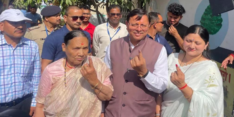 सीएम धामी ने पत्‍नी व अपनी मां संग किया मतदान