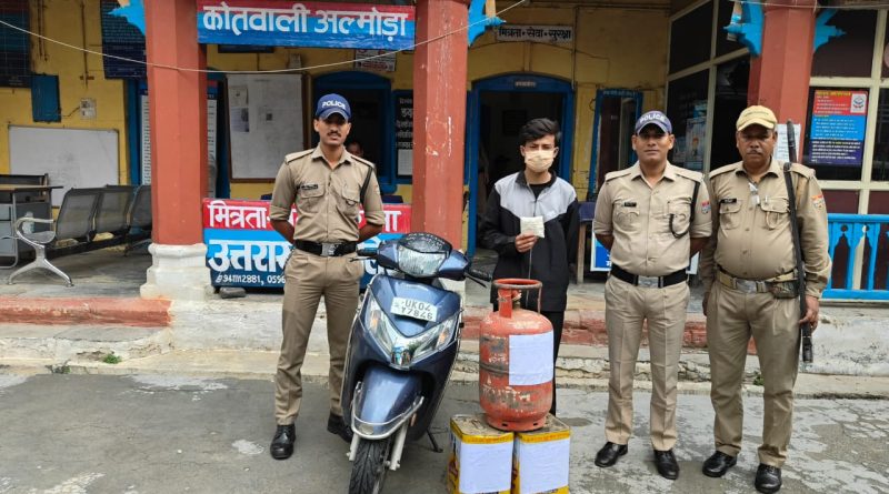 अल्मोड़ा पुलिस ने गंगनाथ मन्दिर एनटीडी में हुई चोरी की घटना का खुलासा कर दिया है। पुलिस ने मामले में एक युवक को एनटीडी अल्मोड़ा से गिरफ्तार कर उसके कब्जे से चोरी का सामान, दानपात्र से चोरी की गई नगदी के अतिरिक्त एक चोरी की स्कूटी बरामद की है। मंगलवार को हेमेन्द्र सिंह मटियानी ने गंगनाथ मंदिर एनटीडी से अज्ञात व्यक्ति के द्वारा मंदिर का ताला तोड़कर मंदिर की सामग्री व दान पात्र से नगदी आदि चोरी हो जाने के सम्बन्ध में  कोतवाली अल्मोड़ा में तहरीर दी थी। जिस पर कोतवाली अल्मोड़ा में अज्ञात के विरुद्ध धारा 305(डी)/331(2) भारतीय न्याय संहिता के अन्तर्गत एफआईआर पंजीकृत की गई थी। कोतवाली अल्मोड़ा प्रभारी निरीक्षक जगदीश चन्द्र देउपा के नेतृत्व में गठित पुलिस टीम द्वारा गहन सुरागरसी-पतारसी करते हुए गंगनाथ मंदिर एनटीडी में चोरी के आरोपी संतोष धामी (19 वर्ष) पुत्र स्व मोहन सिंह निवासी ग्राम गलाती, धारचूला जिला पिथौरागढ़ को बुधवार को गंगनाथ मंदिर के पास एनटीडी से गिरफ्तार करते हुए उसके कब्जे से गंगनाथ मंदिर एनटीडी से चोरी का सामान, नकदी के अतिरिक्त एक स्कूटी संख्या यूके04-वाई-7846 बरामद की गयी। एफआईआर से सम्बन्धित बरामदगी एवं अभियुक्त की गिरफ्तारी के उपरांत पंजीकृत एफआईआर में वैधानिक कार्यवाही की जा रही है। अभियुक्त ने पूछताछ में बताया कि वह स्कूटी होंडा एक्टिवा UK04-Y-7846 को हल्द्वानी से चोरी करके लाया है। यहाँ कोतवाली अल्मोड़ा पुलिस टीम से एसआई देवेन्द्र सिंह नेगी, एसआई रमेश सिंह नेगी, एसआई दिनेश सिंह परिहार, हेड कांस्टेबल किशोर कुमार, आसिफ हुसैन शामिल रहे।
