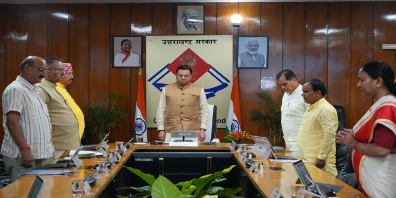 मुख्यमंत्री पुष्कर सिंह धामी की अध्यक्षता में गुरुवार को सचिवालय में मंत्रिमंडल की बैठक आयोजित हुई। बैठक से पूर्व मुख्यमंत्री सहित सभी कैबिनेट मंत्रियों ने दिवंगत विधायक शैला रानी रावत के आकस्मिक निधन पर दो मिनट का मौन रखकर उन्हें श्रद्धांजलि अर्पित की।