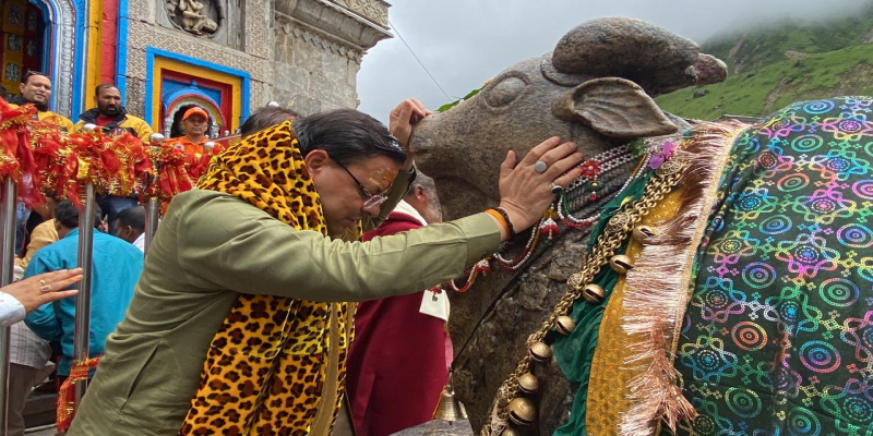 एक दिवसीय दौरे पर बाबा केदारनाथ धाम के दर्शनों को पहुंचे मुख्यमंत्री पुष्कर सिंह धामी का कमिश्नर गढ़वाल विनय शंकर पांडे, आईजी पुलिस गढ़वाल करन सिंह नगन्याल, जिलाधिकारी डॉ सौरभ गहरवार एवं पुलिस अधीक्षक डॉ विशाखा ने वीआईपी हैलीपैड पर उनका स्वागत किया। इसके बाद, मुख्यमंत्री तीर्थ पुरोहित समाज एवं मुख्य पुजारी से मिले। मुख्यमंत्री ने बाबा केदारनाथ मंदिर में प्रवेश कर विशेष पूजा अर्चना एवं रुद्राभिषेक कर संपूर्ण विश्व एवं मानवता के कल्याण की कामना की। इस दौरान उन्होंने उत्तराखंड के सतत विकास के लिए भी बाबा केदार से आशीर्वाद मांगा। करीब 20 मिनट पूजा के बाद मुख्यमंत्री ने धाम में दर्शन करने पहुंचे श्रद्धालुओं एवं स्थानीय लोगों का अभिवादन कर श्रावण मास की शुभकामनाएं दीं। मुख्यमंत्री ने धाम के मुख्य पुजारी शिव शंकर लिंग का आशीर्वाद प्राप्त किया, साथ ही तीर्थ पुरोहितों के साथ धाम में चल रहे निर्माण एवं अन्य कार्यों के संबंध में चर्चा कर सुझाव मांगे। उन्होंने केदारपुरी में चल रहे पुनर्निर्माण कार्यों की समीक्षा करते हुए निर्माण एवं पुनर्निर्माण कार्यों में तेजी लाने एवं गुणवत्ता का ध्यान रखते हुए समयबद्धता के साथ सभी कार्य पूर्ण करने के निर्देश दिए।