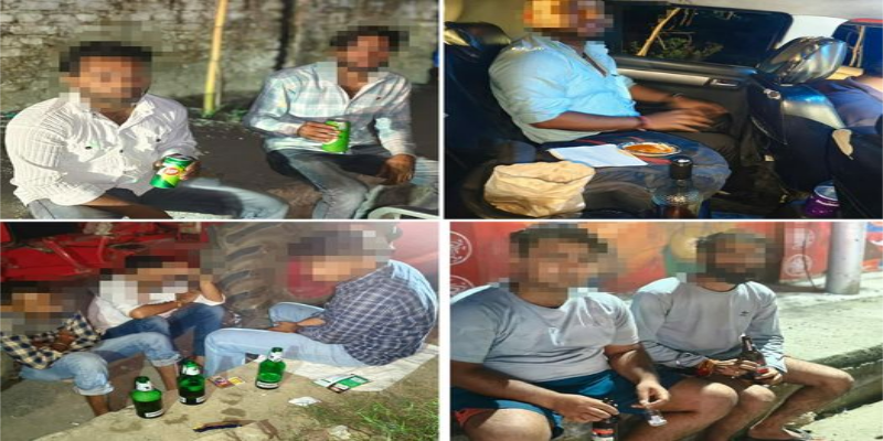 सड़क किनारे शराब पीने वाले 56 लोगों के काटे चालान