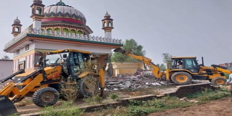 अवैध धर्मस्थल पर चला प्रशासन का बुलडोजर