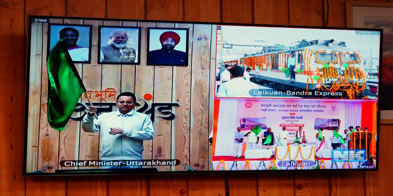 मुख्यमंत्री पुष्कर सिंह धामी ने वर्चुअल माध्यम से किया लालकुआं-बांद्रा सुपरफास्ट ट्रेन को हरी झण्डी दिखाकर रवाना