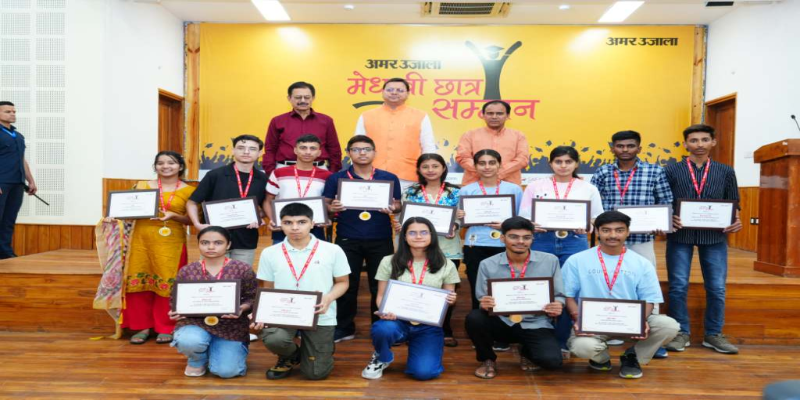 मुख्यमंत्री पुष्कर सिंह धामी ने मंगलवार को मुख्यमंत्री आवास स्थित मुख्य सेवक सदन में मेधावी छात्र सम्मान समारोह में उत्तराखण्ड माध्यमिक शिक्षा बोर्ड के हाईस्कूल और इण्टरमीडिएट के 75 मेधावी छात्र-छात्राओं को सम्मानित किया। अमर उजाला समाचार पत्र द्वारा आयोजित कार्यक्रम में मुख्यमंत्री ने कहा कि इस सम्मान समारोह के माध्यम से अमर उजाला प्रतिवर्ष हमारे राज्य के प्रतिभावान छात्रों को सम्मानित कर उनका उत्साहवर्धन कर रहा है।  मुख्यमंत्री ने कहा कि सम्मानित हो रहे सभी प्रतिभाशाली विद्यार्थी राज्य के उज्ज्वल भविष्य की नींव हैं। अपने माता-पिता, शिक्षकों और विद्यालय के साथ ही इन विद्यार्थियों ने उत्तराखंड का मान भी बढ़ाया है। प्रदेश की शिक्षा व्यवस्था को बेहतर बनाने के लिए सरकार निरतंर प्रयासरत है। सरकार द्वारा क्वालिटी एजुकेशन पर विशेष ध्यान दिया जा रहा है। सभी सरकारी विद्यालयों में एन.सी.ई.आर.टी. की पाठ्य पुस्तकें अनिवार्य की गई हैं। राजकीय और सहायता प्राप्त विद्यालयों में कक्षा 1 से 12 तक के सभी छात्रों को निःशुल्क पाठ्य पुस्तकें उपलब्ध कराई जा रही हैं। प्रदेश में 226 विद्यालयों को पीएम विद्यालय के रूप में विकसित किया जा रहा है। 500 विद्यालयों में वर्चुअल कक्षाएं संचालित की जा रही हैं तथा 840 नए विद्यालयों में हाइब्रिड मोड में स्मार्ट क्लासरूम भी स्थापित किए जा रहे हैं।  मुख्यमंत्री ने कहा कि उत्तराखण्ड के सरकारी और अशासकीय स्कूलों के 6 से 12वीं कक्षा तक के मेधावी छात्र-छात्राओं को मुख्यमंत्री मेधावी छात्र प्रोत्साहन छात्रवृत्ति योजना के माध्यम से प्रत्येक माह छात्रवृत्ति दी जा रही है। बच्चों के व्यक्तित्व विकास के उद्देश्य से प्रत्येक विकासखण्ड के 10वीं और 12वीं के मेधावी छात्रों को भारत भ्रमण पर भेजने की शुरुआत की गई है। माध्यमिक विद्यालयों में 8 ट्रेड्स में व्यावसायिक शिक्षा प्रारंभ की गई है, जिससे 42 हजार से अधिक छात्र-छात्राएं कौशल आधारित शिक्षा प्राप्त कर रहे हैं। सरकार द्वारा स्थानीय भाषा और संस्कृति के संरक्षण के लिए गढ़वाली, कुमाऊँनी, जौनसारी भाषाओं में पुस्तकें तैयार की गई हैं। ’हमारी विरासत’ पुस्तक के माध्यम से कक्षा 6 से 8 तक के छात्रों को भारत की संस्कृति, लोक परंपरा और महान विभूतियों से परिचित कराने का कार्य भी किया जा रहा है। बच्चों में कौशल, उद्यमिता और भारतीय ज्ञान परंपरा को विकसित करने के लिए ’कौशलम कार्यक्रम’ भी प्रारंभ किया गया है। इस अवसर पर शिक्षा मंत्री डॉ. धन सिंह रावत, महानिदेशक सूचना बंशीधर तिवारी, सलाहकार संपादक अमर उजाला उदय कुमार,  अमर उजाला के देहरादून संपादक अनूप वाजपेयी, यूनिट हेड पंकज शर्मा उपस्थित थे।