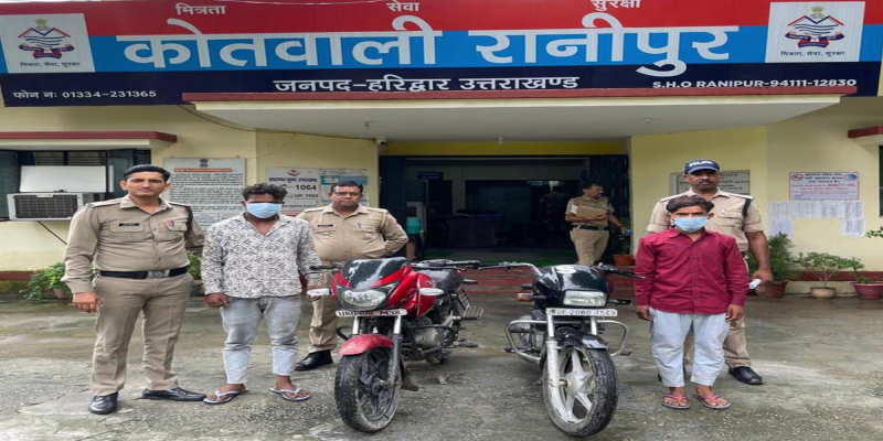 रानीपुर पुलिस ने वाहन चोरी के मामलों का खुलासा कर दो लोगों को चोरी की बाइक सहित गिरफ्तार किया है। पकड़े गए आरोपियों की निशानदेही पर एक और चोरी की बाइक भी बरामद की गई। गिरफ्तार आरोपियों में गिरीश कुमार (22) निवासी बिजनौर और विकास (20) निवासी गंगनहर शामिल हैं, जो फिलहाल सिडकुल क्षेत्र में किराए पर रह रहे थे। मामला 10 अगस्त का है, जब ग्राम पूरणपुर साल्हापुर निवासी हसीन ने अपनी बाइक गली नंबर 3 सुमननगर से चोरी होने की रिपोर्ट कोतवाली रानीपुर में दर्ज कराई थी। चेकिंग अभियान के दौरान 12 अगस्त को पथरी रोह नदी के रफ्टा पुल के पास से दोनों को चोरी की पल्सर बाइक के साथ दबोच लिया।
