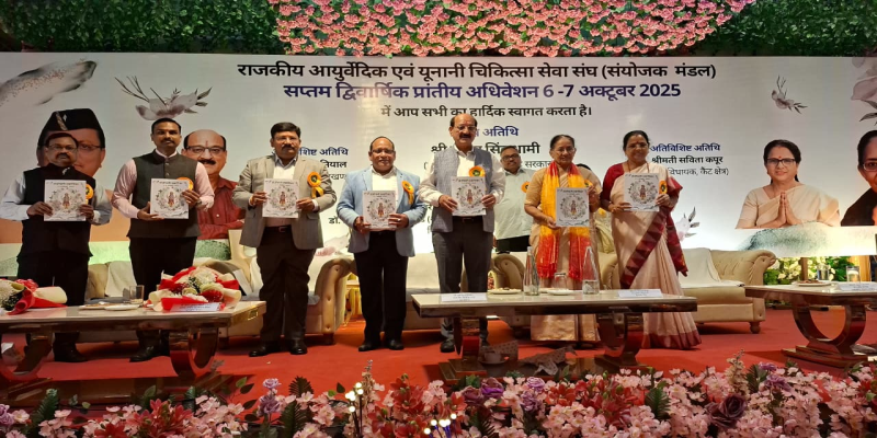 राजकीय आयुर्वेदिक एवं यूनानी चिकित्सा सेवा संघ का सप्तम द्विवार्षिक प्रांतीय अधिवेशन होटल सन पार्क, जीएचएस रोड देहरादून में शुरू हुआ। कैबिनेट मंत्री सुबोध उनियाल ने अधिवेशन का विधिवत शुभारंभ किया। इस मौके पर अति विशिष्ट अतिथि कैंट विधायक सविता कपूर, विशिष्ट अतिथि अध्यक्ष महिला आयोग कुसुम कंडवाल, आयुष सचिव दीपेंद्र चौधरी एवं अपर सचिव आयुष शिक्षा विभाग एवं निदेशक डॉ विजय कुमार जोगदंडे मौजूद रहे। कार्यक्रम के दौरान आयुष विभाग की संजीवनी स्मारिका का विमोचन भी किया गया। कार्यक्रम के मुख्य संयोजक डॉ. आरपी सिंह ने अतिथियों को पुष्पगुच्छ एवं प्रतीक चिन्ह भेंट करते हुए सम्मानित किया। मुख्यमंत्री पुष्कर सिंह धामी ने वर्चुअल माध्यम से कार्यक्रम सम्मिलित होते हुए संघ के पदाधिकारियों एवं सदस्यों को संबोधित करते हुए शुभकामनाएं दी।