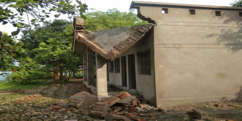 नवनिर्मित विवेचना कक्ष की दिवाल सहित छज्जा गिरा