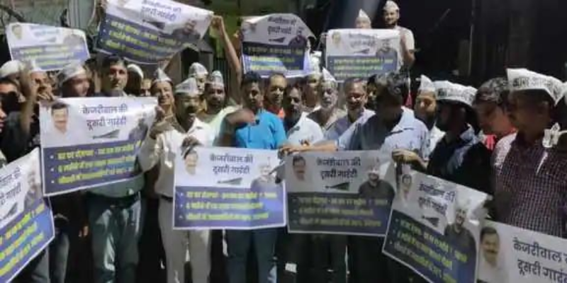 केजरीवाल रोजगार गारंटी योजना यात्रा के तहत आप ने रैली निकाली