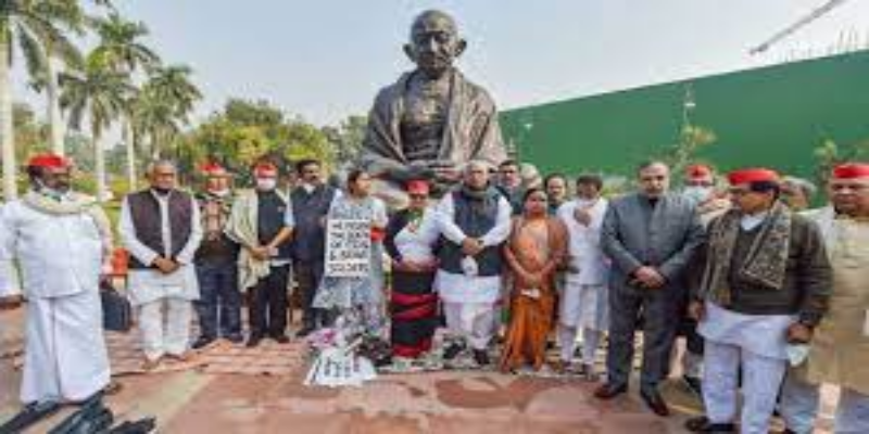 संसद के मॉनसून सत्र के दौरान उच्च सदन में ‘‘अशोभनीय आचरण को लेकर शीतकालीन सत्र की शेष अवधि के लिए निलंबित किए गए राज्यसभा के 12 सदस्यों ने हेलीकॉप्टर दुर्घटना में प्रमुख रक्षा अध्यक्ष (सीडीएस) जनरल बिपिन रावत, उनकी पत्नी और 11 अन्य सैन्यकर्मियों की मृत्य के मद्देनजर उनके सम्मान में बृहस्पतिवार को अपना धरना एक दिन के लिए निलंबित कर दिया। गत 29 नवंबर को निलंबन के बाद से ये सांसद यहां संसद परिसर में महात्मा गांधी की प्रतिमा के समक्ष धरना दे रहे हैं। उनका कहना है कि जब तक निलंबन रद्द नहीं होगा, तब तक वे संसद की कार्यवाही के दौरान सुबह से शाम तक महात्मा गांधी की प्रतिमा के सामने धरने पर बैठेंगे। राज्यसभा में नेता प्रतिपक्ष मल्लिकार्जुन खडग़े और कई अन्य विपक्षी दलों के नेताओं ने बृहस्पतिवार को बैठक की जिसमें यह फैसला लिया कि जनरल बिपिन रावत और 12 अन्य लोगों के सम्मान में यह धरना एक दिन के लिए निलंबित किया जाएगा। इसके बाद इन नेताओं ने कुछ देर के लिए मौन भी रखा। इनमें समाजवादी पार्टी के नेता रामगोपाल यादव, कांग्रेस के वरिष्ठ नेता आनंद शर्मा और कुछ अन्य विपक्षी सांसद में शामिल थे।