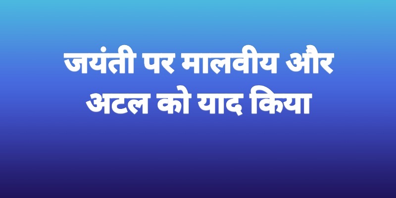 ब्यूरो के अध्यक्ष नवीन जैन ने कहा कि देश की एकता व अखंडता, राष्ट्र विकास के उद्देश्य को लेकर अटल बिहारी वाजपेयी आगे बढ़ें। उन्होंने 24 दलों की साझा सरकार बिना किसी मतभेद के चलाई थी। भाजपा नेता सुबोध शर्मा ने कहा कि अटल बिहारी वाजपेयी और पंडित मदन मोहन मालवीय ने यह साबित किया था कि यदि सच्ची देशभक्ति हो तो कार्य को सिद्ध करने में कोई बाधा नहीं आती है। अशोक आर्य ने भी कहा कि पंडित मदन मोहन मालवीय व अटल बिहारी वाजपेयी का जीवन सबके लिए सीख लेने वाला है। इस दौरान अनिल वर्मा, सुधीर चौधरी, नरेद्र जैन, अश्विन भारद्वाज, अनुज आत्रेय, सुनील कुमार गोयल, अशोक कुमार, रवींद्र पाल वर्मा, सुखलाल, नरेश कुमार नागियान, राजेश वर्मा, सुमित बिरला, सचिन गोंड़वाल ,पंकज जैन आदि मौजूद रहे।