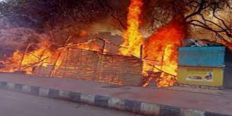 फुटपाथ पर लगी दर्जनों दुकानें जलकर राख