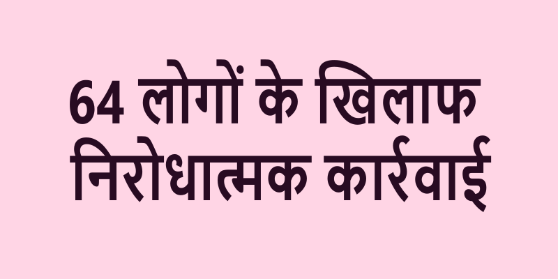 64 लोगों के खिलाफ निरोधात्मक कार्रवाई
