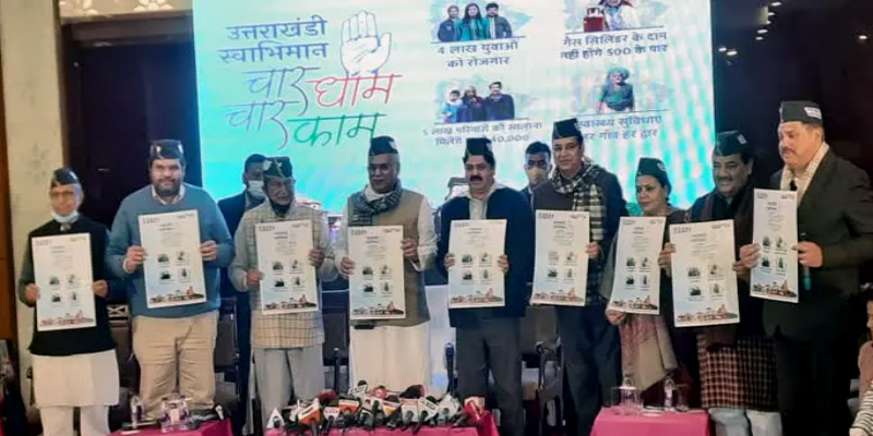 देहरादून। उत्तराखंड विधानसभा चुनाव 2022 को लेकर कांग्रेस ने आज 24 जनवरी को चुनावी कैंपन अभियान और गीत ‘उत्तराखंड स्वाभिमान चार धाम, चार काम’ का विमोचन किया है। चुनावी कैंपन अभियान और गीत का शुभारंभ छत्तीसगढ़ के मुख्यमंत्री भूपेश बघेल ने किया। इस दौरान उन्होंने प्रेस वार्ता कर बीजेपी पर निशाना भी साधा