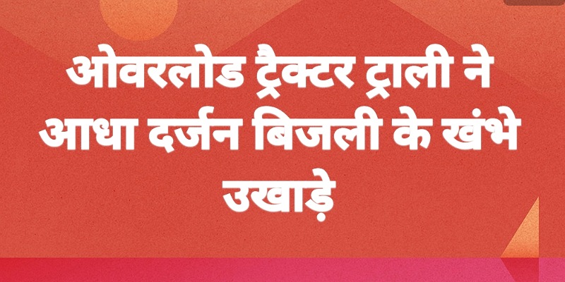 ओवरलोड ट्रैक्टर ट्राली ने आधा दर्जन बिजली के खंभे उखाड़े