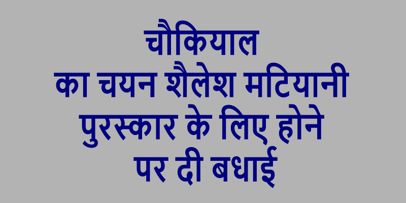 चौकियाल का चयन शैलेश मटियानी पुरस्कार के लिए होने पर दी बधाई