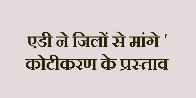 एडी ने जिलों से मांगे कोटीकरण के प्रस्ताव