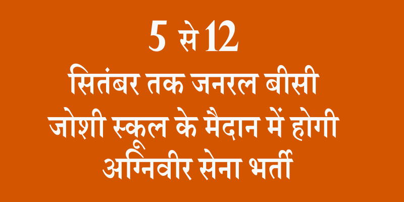 5 से 12 सितंबर तक जनरल बीसी जोशी स्कूल के मैदान में होगी अग्निवीर सेना भर्ती
